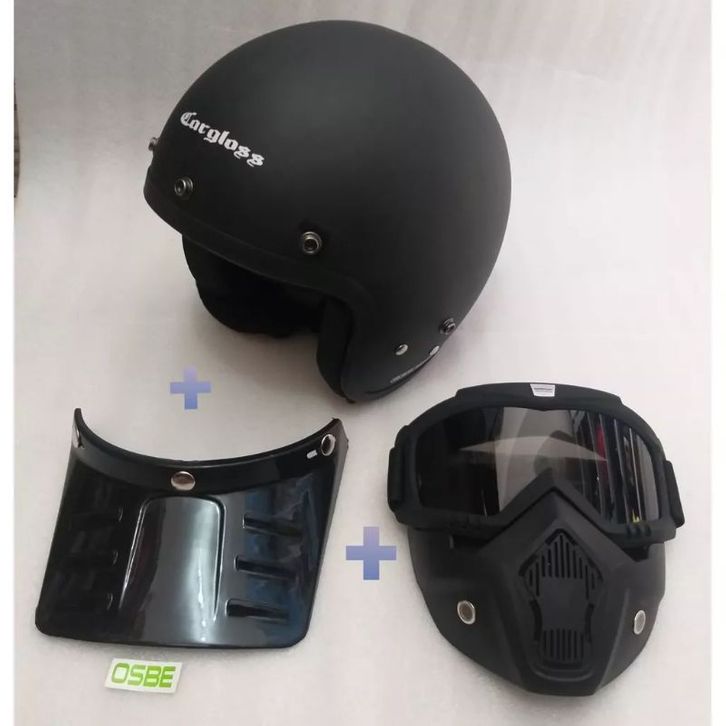 Helm Bogo Retro+Goggle mask Topeng Fullface Helem Trail Motocross Pria Wanita