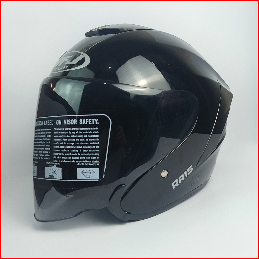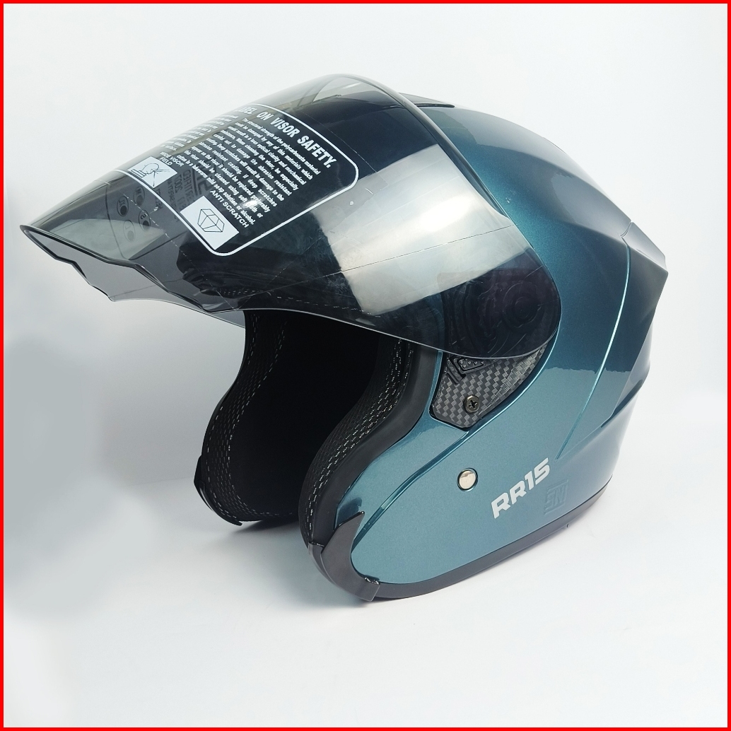 Helm Half Face Nfj Rr15 Cream Kaca Visor Hitam Smoke Helm Premium Untuk Pria Dan Wanita Dewasa Sni