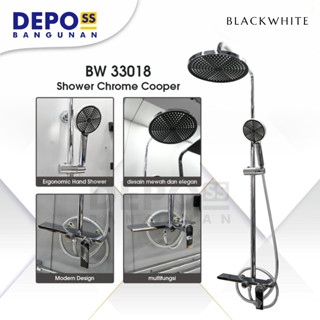 Black White - Shower Tiang Column Chrome Cooper Set Kran Panas Dingin BW 33018 / BW33018