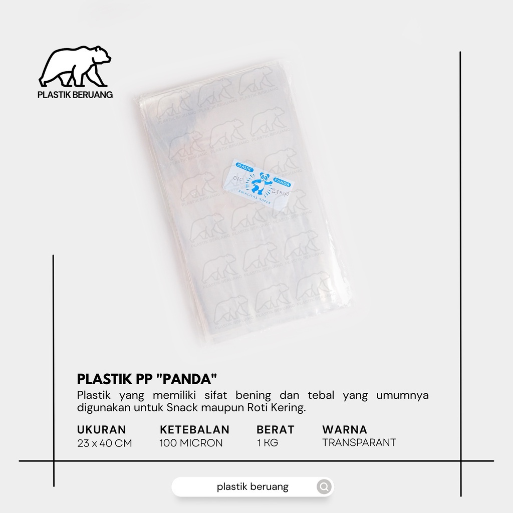 Plastik PP Panda 23x40 Tebal 010 Bening Food Grade Untuk Plastik Packaging Snack Makanan Ringan Oleh Oleh Isi 1 Kg 23 X