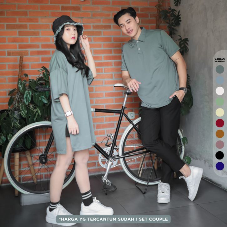 ALESANA Tshirt Bundling 1 Set Couple Kaos Pasangan Lengan Pendek Pria Wanita Size L XL-BT