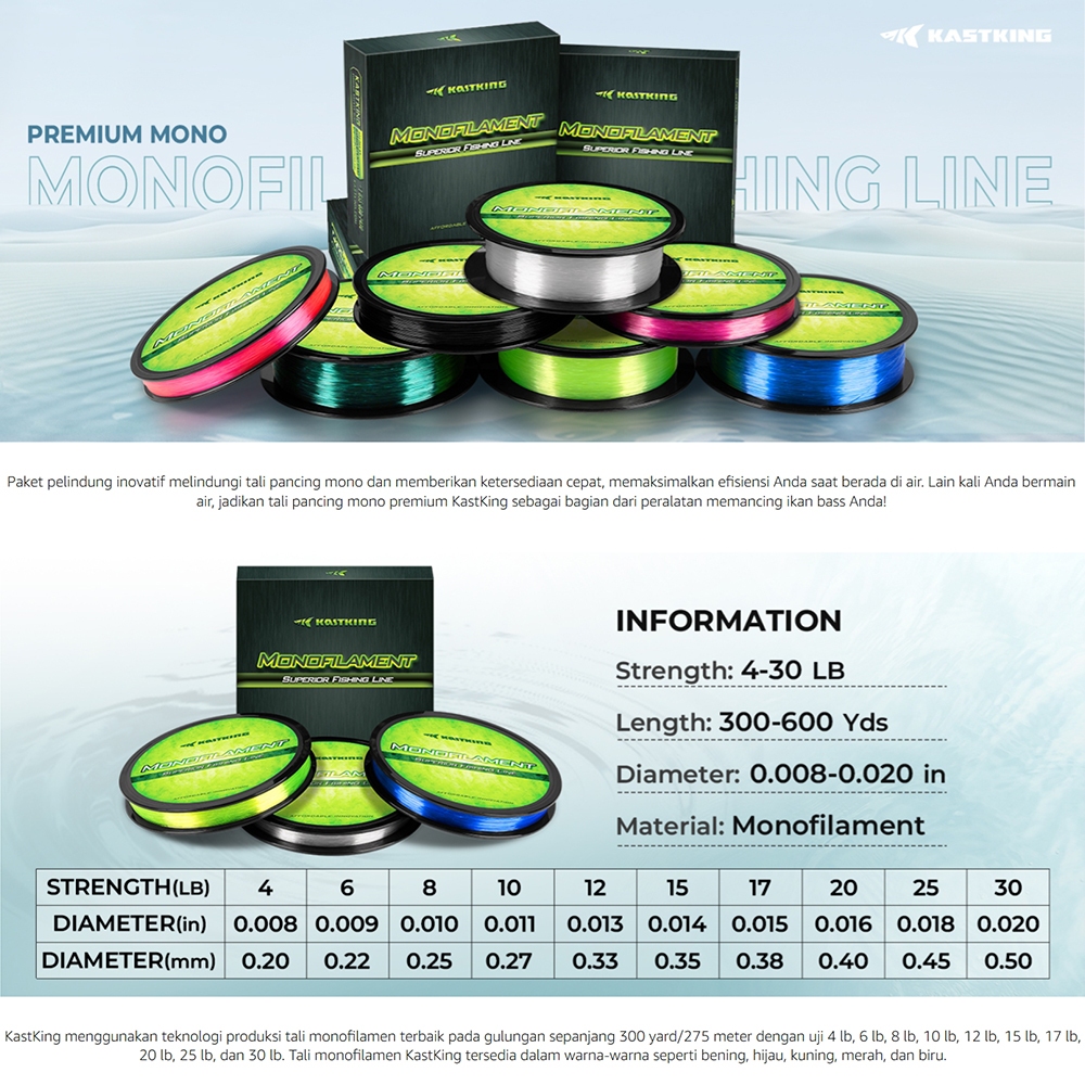 [OFFICAL] Kastking 274 Meter Nylon Senar Pancing Monofilament Superior Nylon, 300 Yards Fishing Line - Paralleled Roll T
