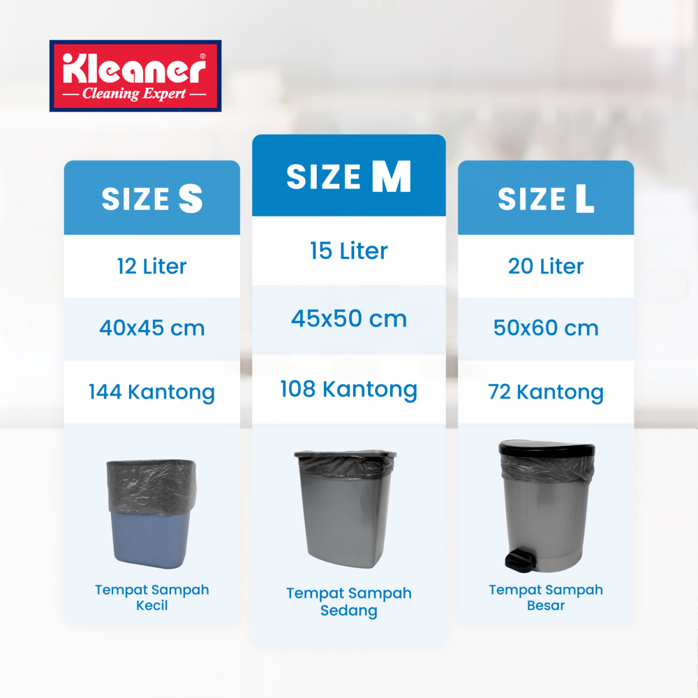 Kleaner Trash Bag HITAM 144 pcs - 12L /15L/ 20L (3roll) Kantong Sampah