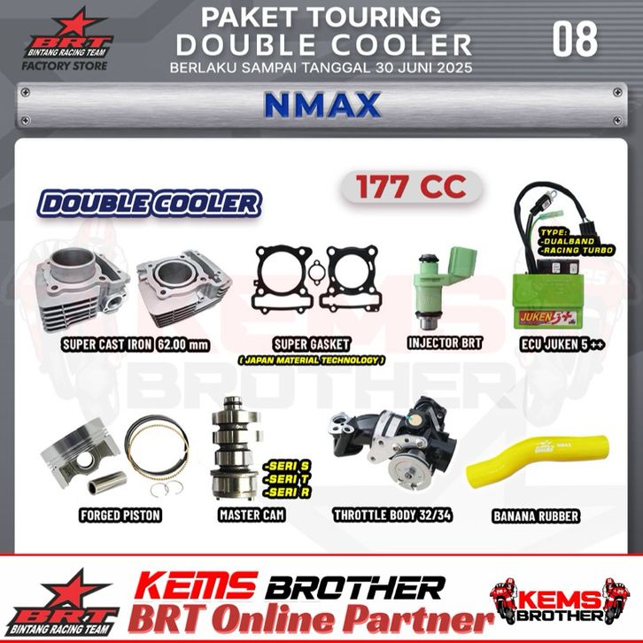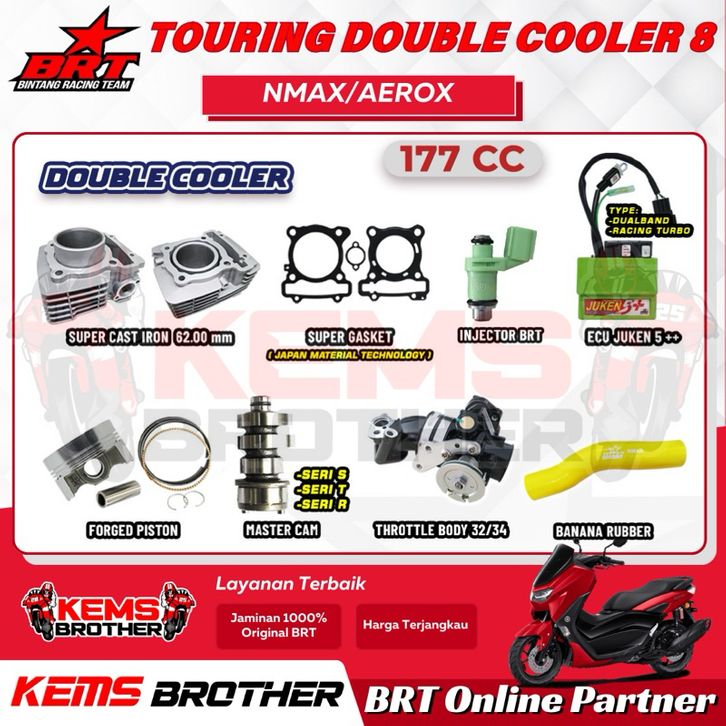 PAKET NMAX AEROX BRT DOUBLE COOLER TOURING 8 BOREUP 177CC ORIGINAL BRT (Blok, Injektor, Ecu, Noken