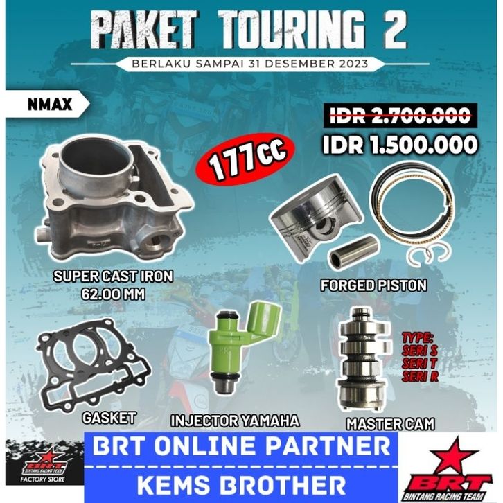 PAKET BLOK BRT AEROX NMAX BRT GEN 2 PISTON 62 PLUS MASTERCAM DAN INJEKTOR TOURING 2 ORIGINAL BRT (