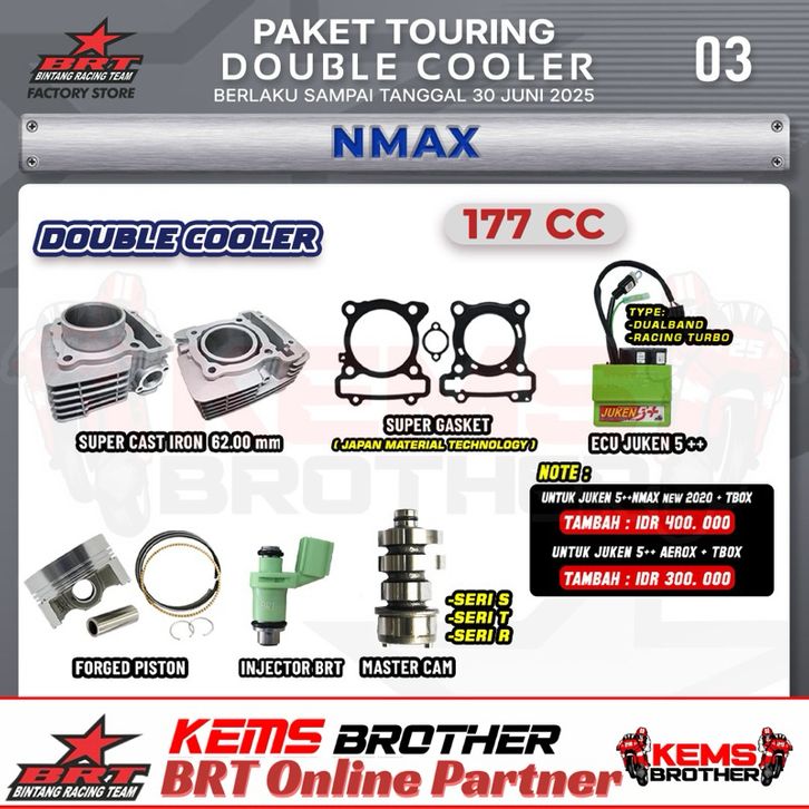 PAKET NMAX AEROX BRT DOUBLE COOLER TOURING 3 BOREUP 177CC ORIGINAL BRT (Blok Ecu Injektor Nokenas)
