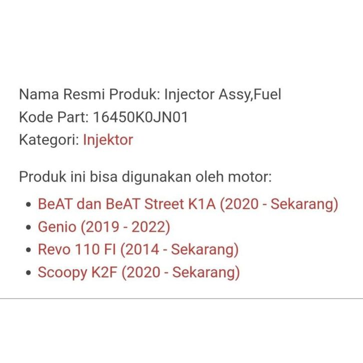 INJEKTOR / INJECTOR ORI GENIO (K0J-N01) BEAT-BEAT STREET-REVO 110 F1-SCOOPY K2F