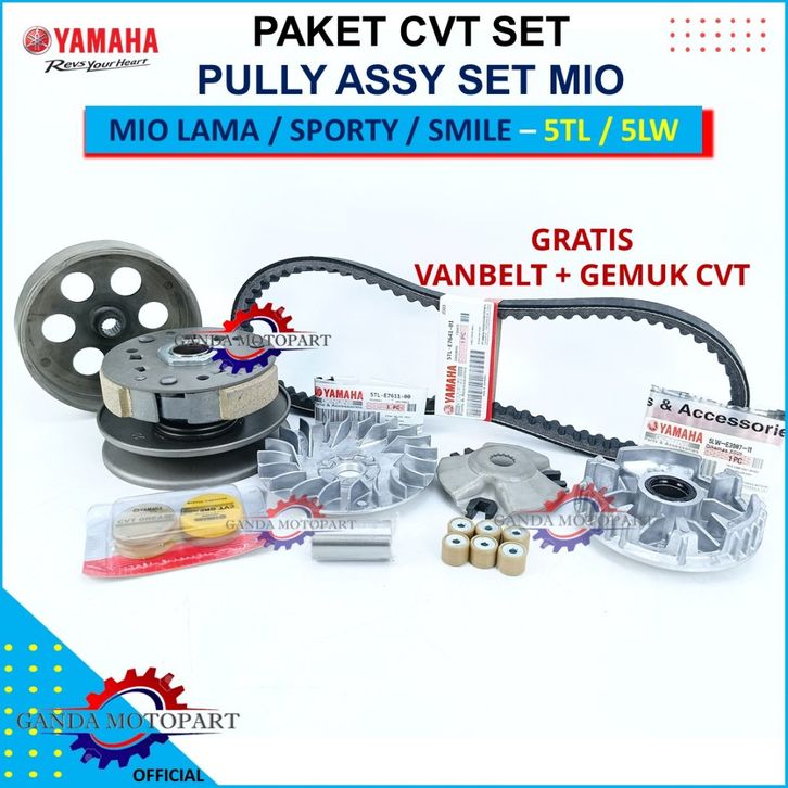 PAKET CVT LENGKAP MIO SPORTY/SMILE/SOUL KARBU (VANBELT+RUMAH ROLLER SET+KIPAS+PULLY ASSY) 5TL GANDA
