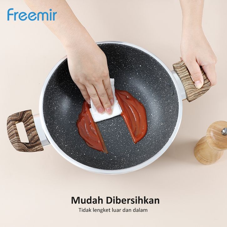 Panci Wajan Anti Lengket Freemir 24/20cm Panci Dua Handle Dengan Tutup Kaca Tinggi 10cm