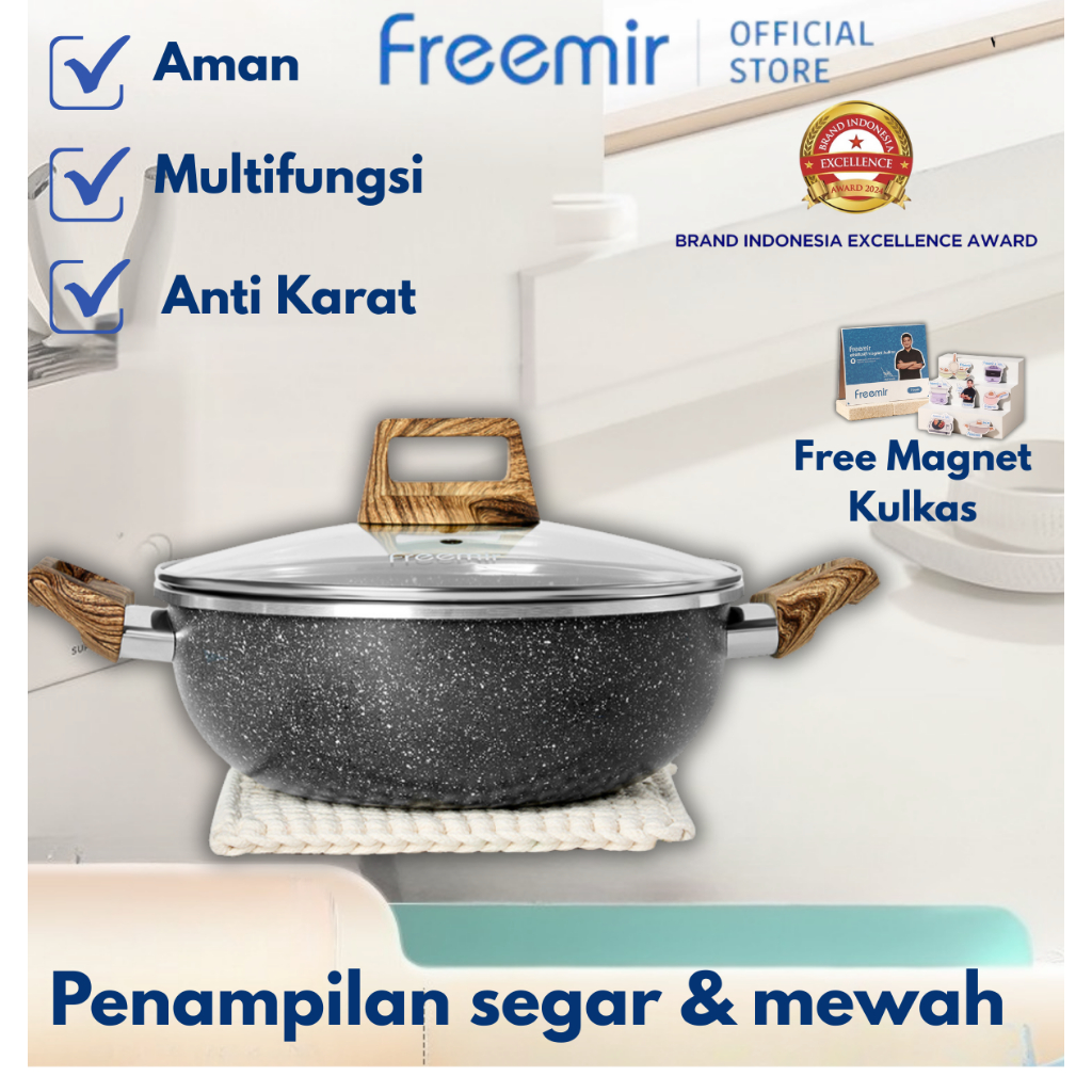 Freemir Official Shop Wajan Anti Lengket 24/30cm Penggorengan Serbaguna Mie Rebus Dengan Penutup Serbaguna