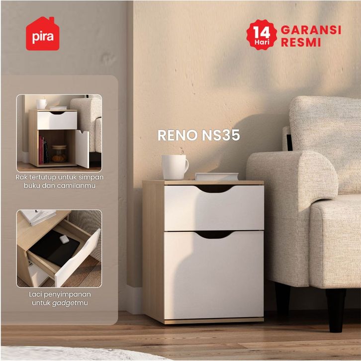 [Mall] Meja Nakas / Meja Sudut / Meja Samping Laci PIRA METROPOLIS ORIGINAL- RENO NS35
