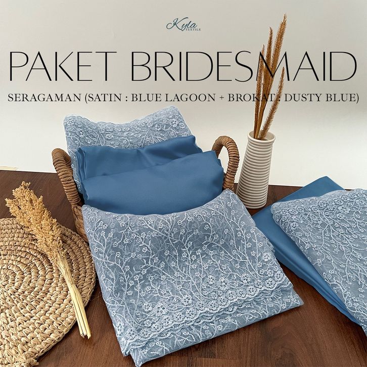 PAKET KAIN BRIDESMAID PREMIUM LENGKAP SATIN KEBAYA BROKAT WARNA BLUE LAGOON