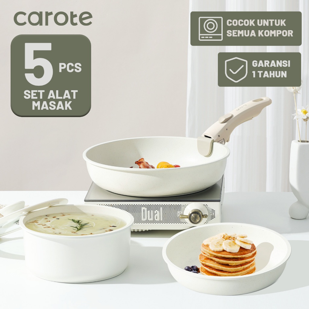 Panci 1 Set Lengkap Carote Peralatan Masak 5 PCS Dengan Gagang Lepas Free PFOA Garansi