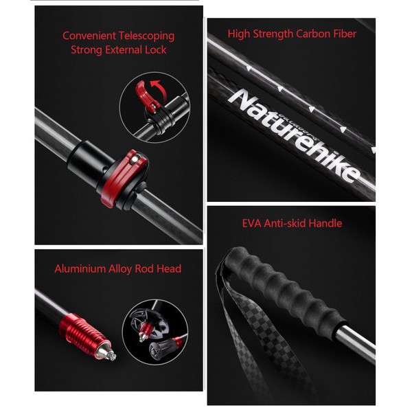 TONGKAT PENDAKI NATUREHIKE TREKKING POLE ST10 NH19S010-T GUNUNG HIKING FULL CARBON ORIGINAL MURAH TERLARIS