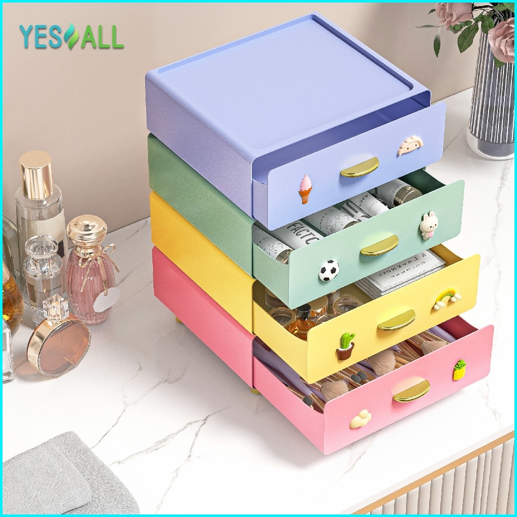 Yesall Rak Susun Serbaguna - Rak Kosmetik Kotak Penyimpanan Rak Skincare Rak Serbaguna Tempat Make Up Rak Kosmetik Aesth