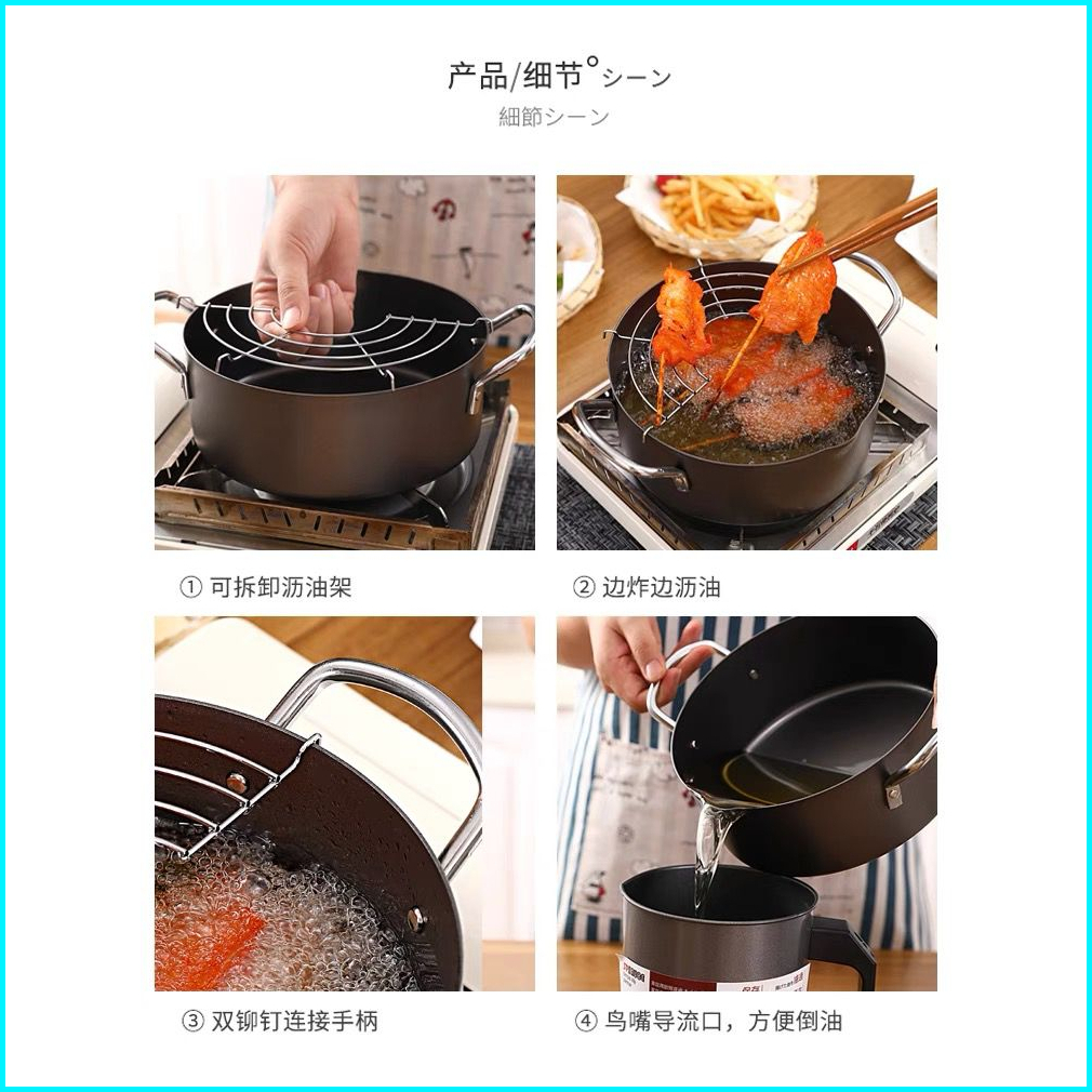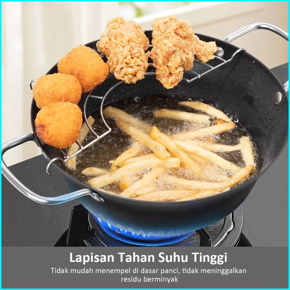 Indoline - Panci Penggorengan Set Tirisan 2in1 Anti Lengket - Wajan Deep Frypan Kuping 20cm - Multifryer Pot Dengan Tiri