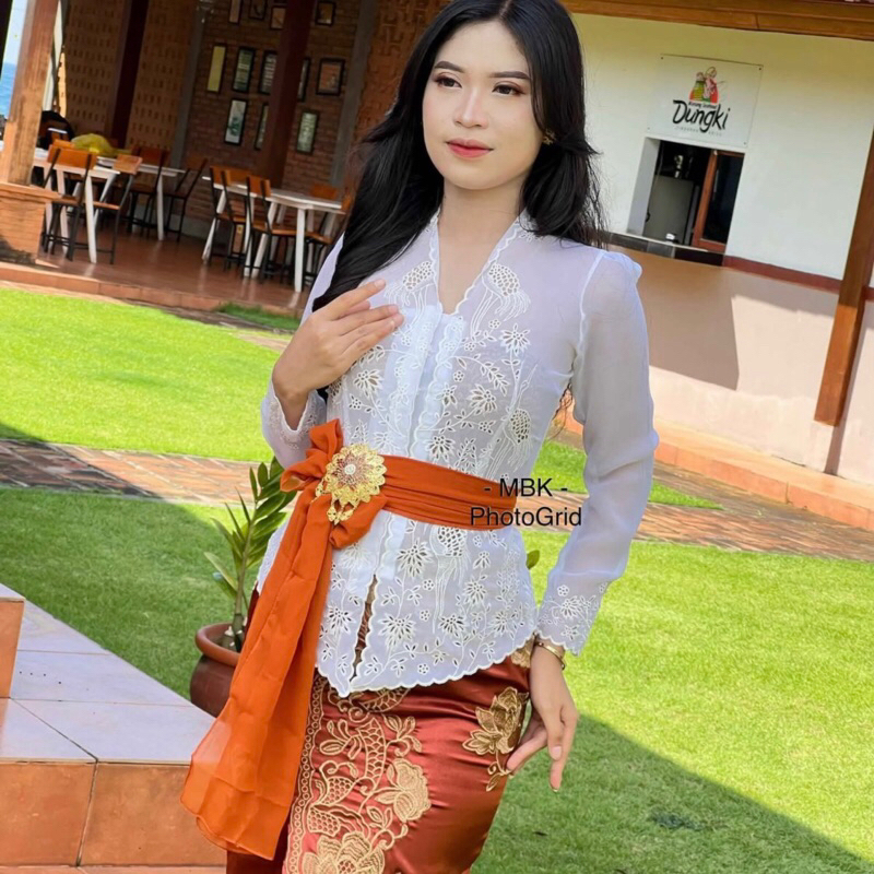 BAJU KEBAYA BALI BORDIR MOTIF MERAK TANGAN PANJANG TERBARU MODERN ONE SET BELT BAJU WANITA TRADISIONAL VIRAL
