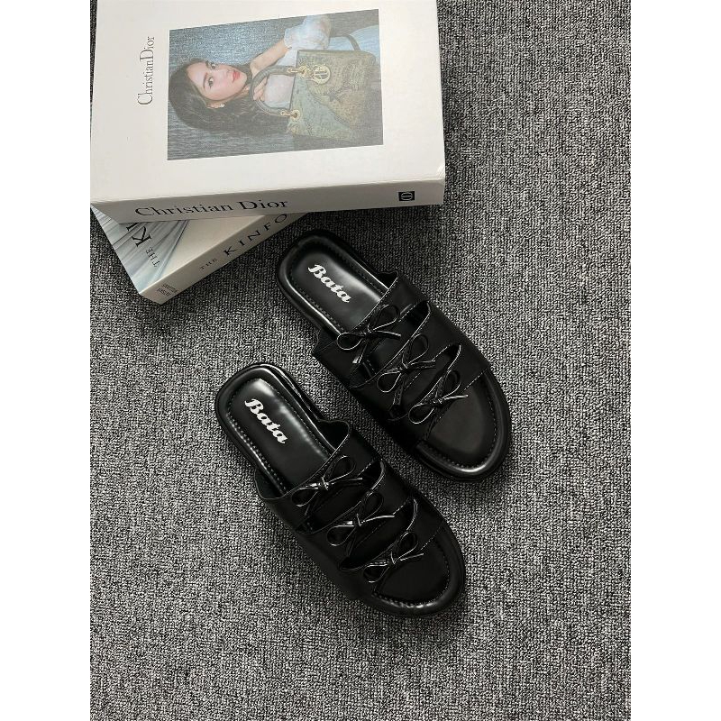 Promo BATA Sandal wanita wedges 5cm Sandal slop pita Sandal wedges cewek slide anti licin sendal tinggi