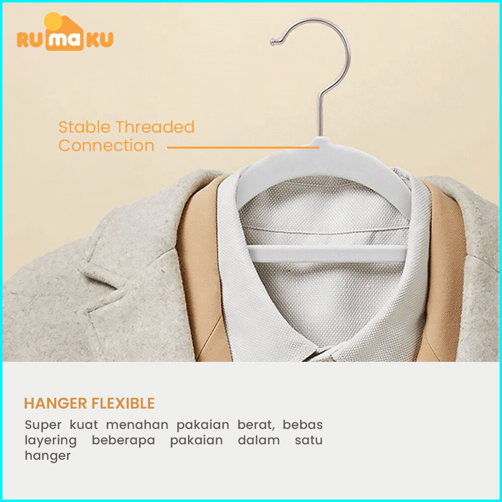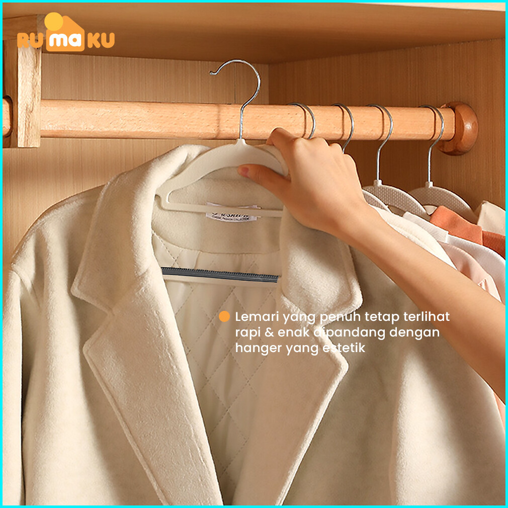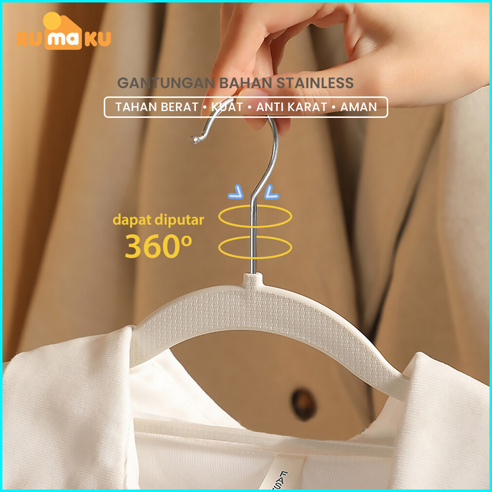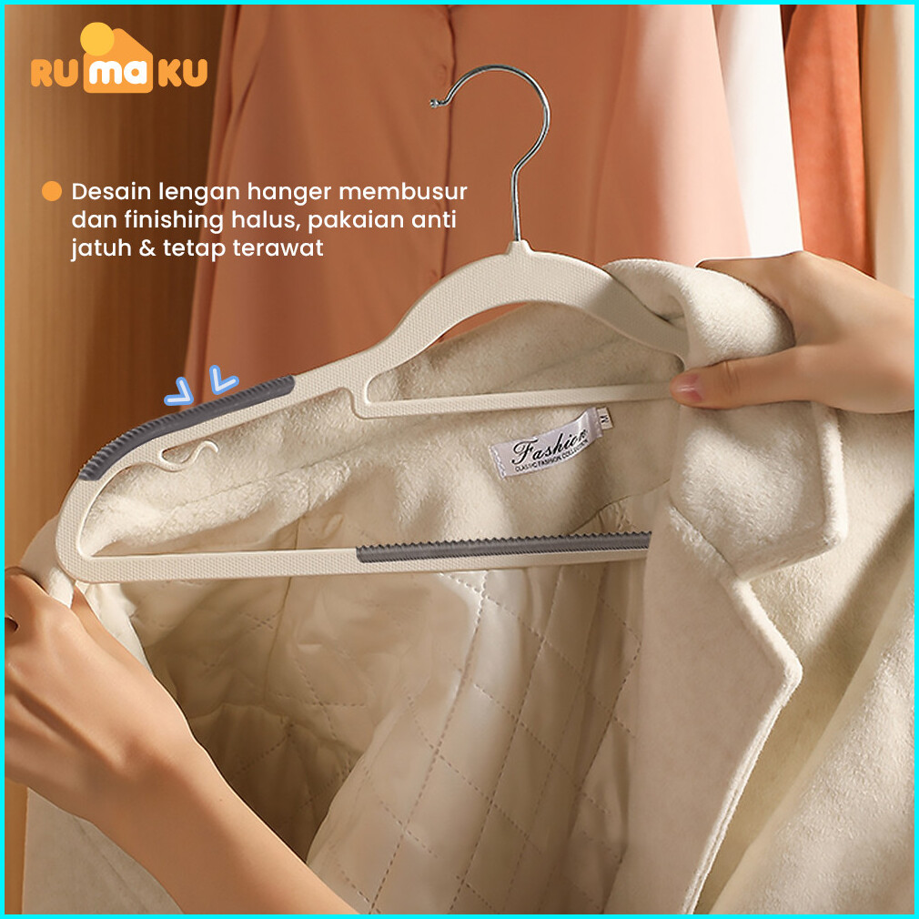 Rumaku Hanger 10 Pcs Gantungan Baju Plastik Kokoh Dengan Karet Anti Slip