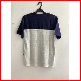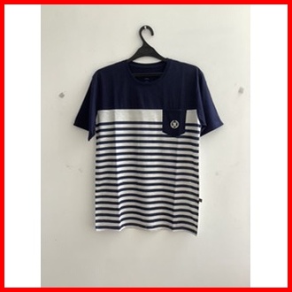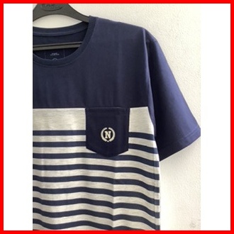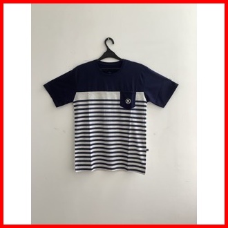 Kaos T-shirt Biru Tua Kombinasi Cream Dengan Garis Garis Biru Tua Dan Kantong Logo N Katun Mix
