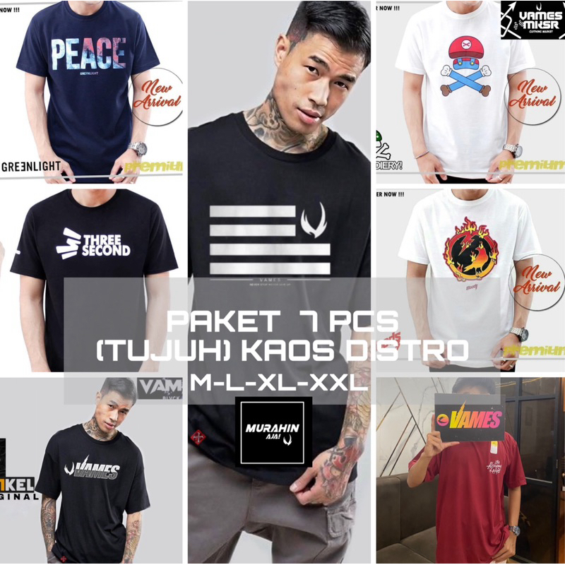 Kaos Distro 7pcs Laki Laki Grosir Murah Pria Baju Cowok Keren