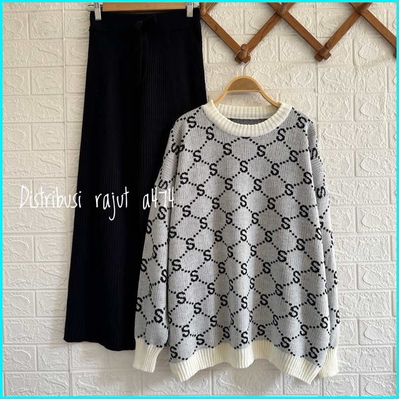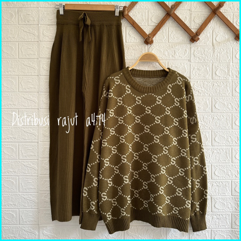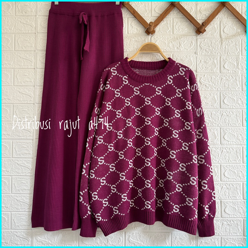 Oneset Sweater Bangkok Setelan Celana Kulot Rajut Wanita