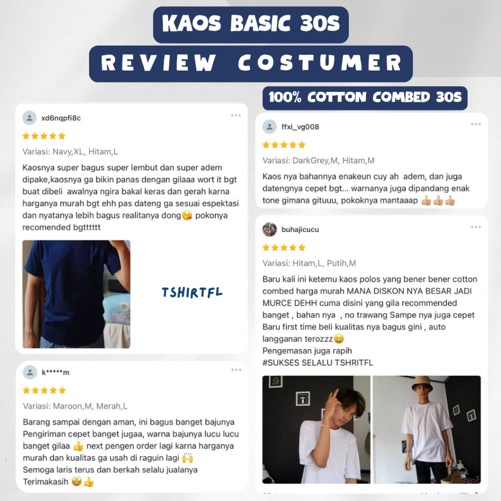 Kaos Polos Lengan Pendek Combed 30S Baju Pria Oblong Tshirt Unisex