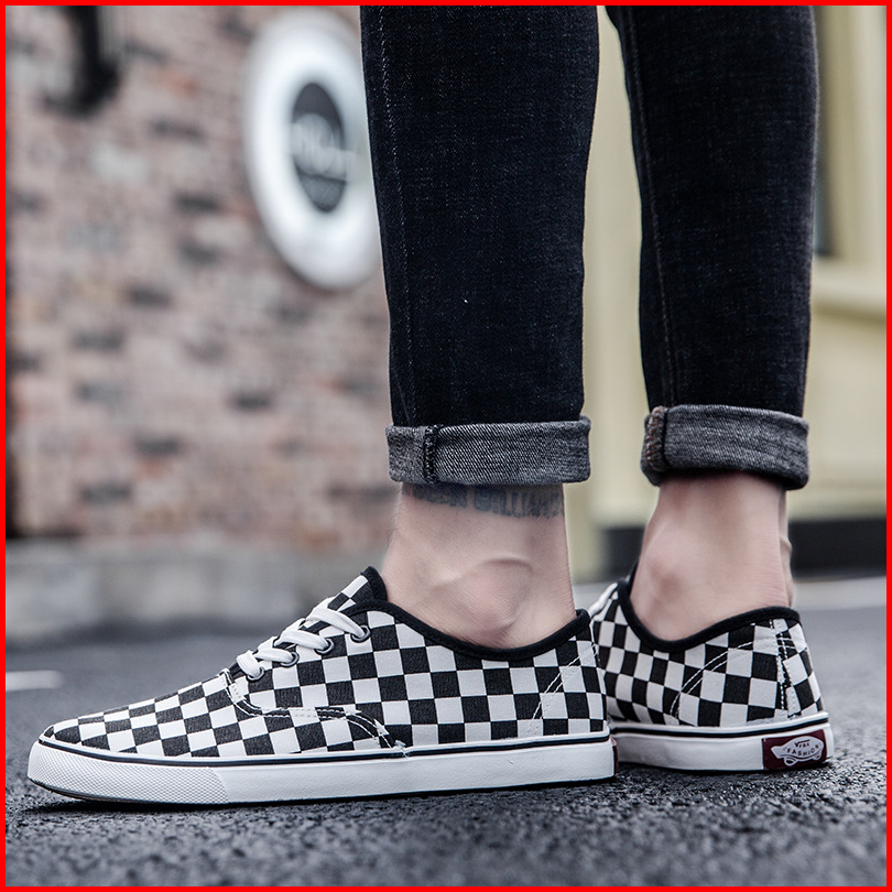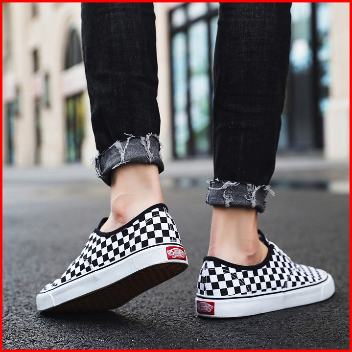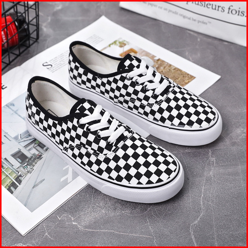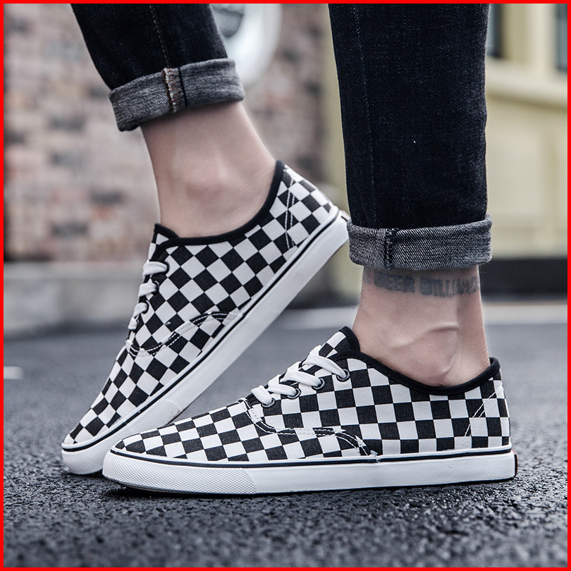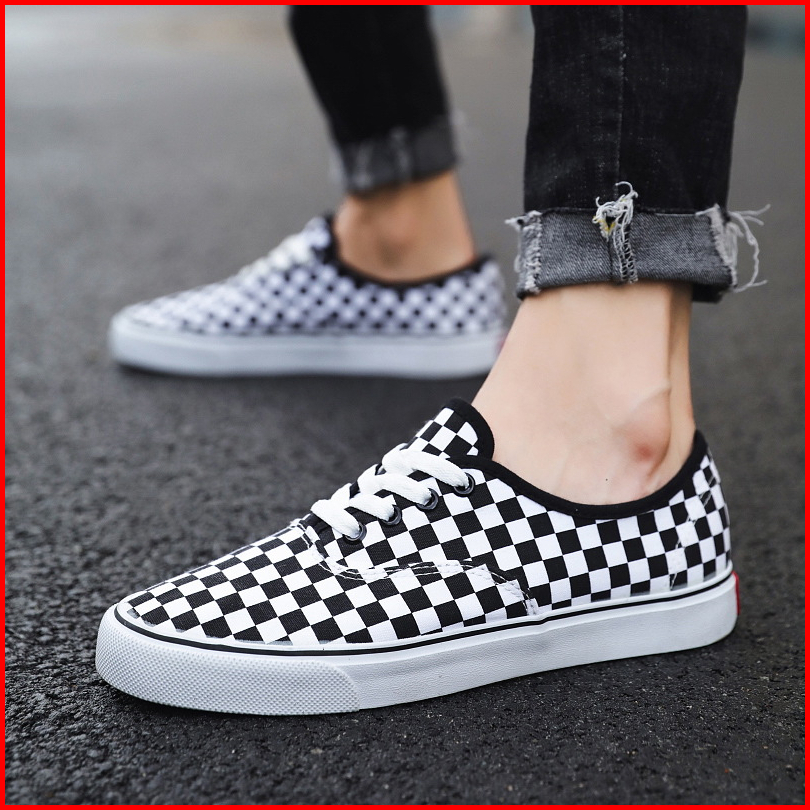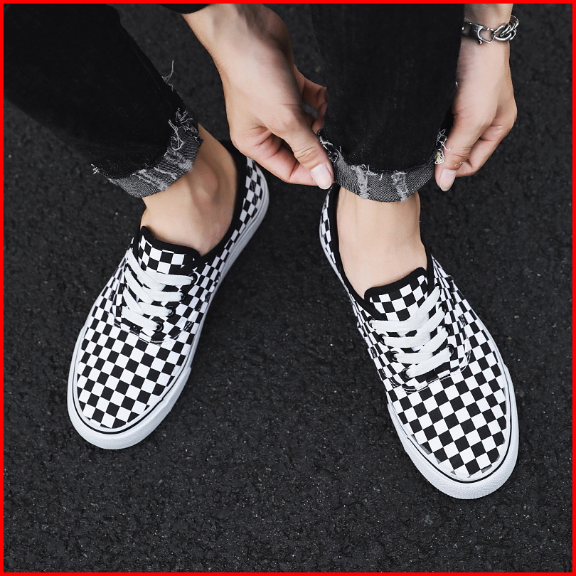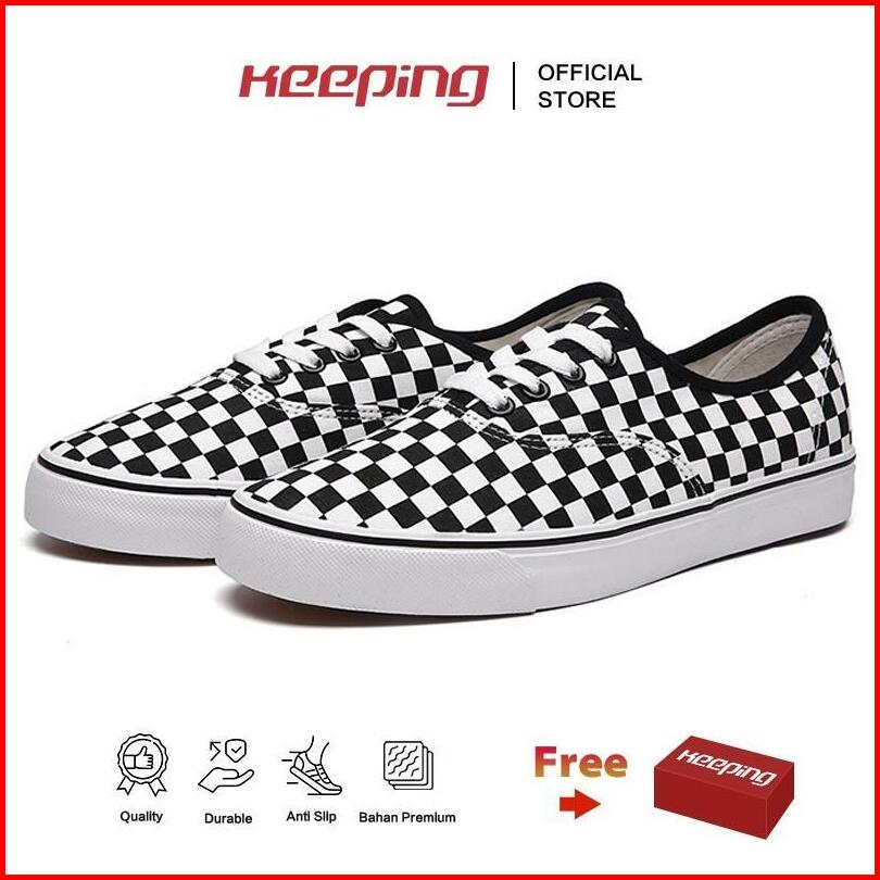 Keeping Sepatu Pria Original 100 Sneakers Sepatu Kanvas Sekolah Nonslip Checkerboard White Black Sepatu Cowok Ksc407