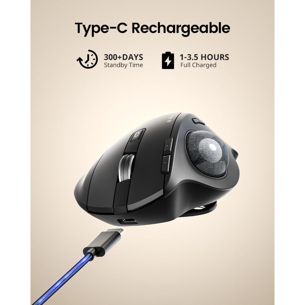 ProtoArc EM01 NL Trackball Mouse Wireless 2.4G + Dual Bluetooth Rechargeable - Garansi 2 Tahun