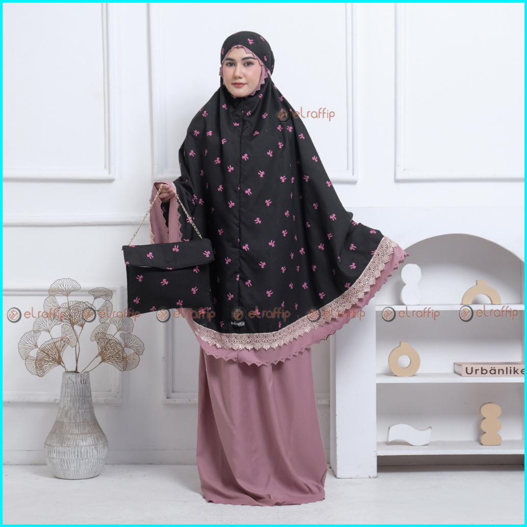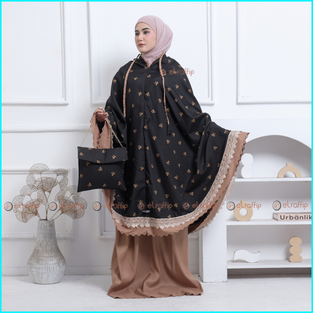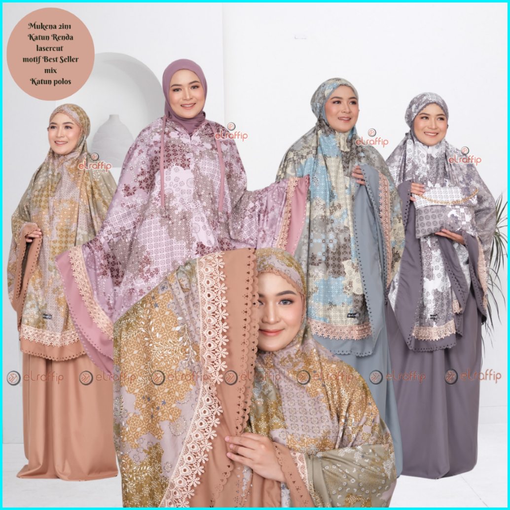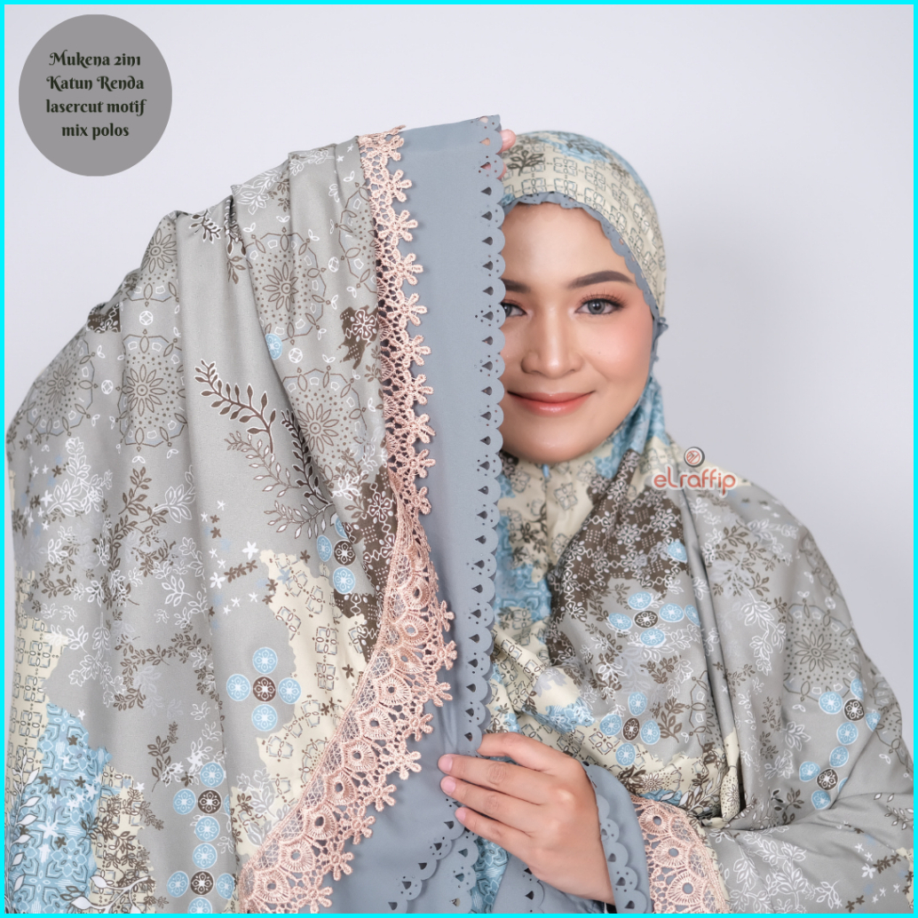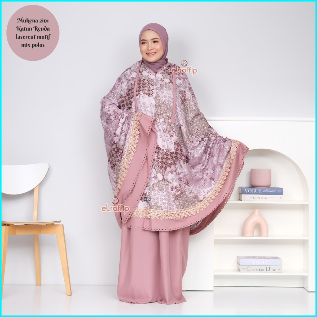 Elraffip-mukena Dewasa 2in1 Katun Renda Motif Printing Lasercut Kanayaseries