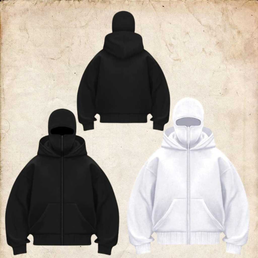 Hoodie Balaclava Zipper Jaket Hoodie Boxy Hita And Putih Jaket Premium Unisex