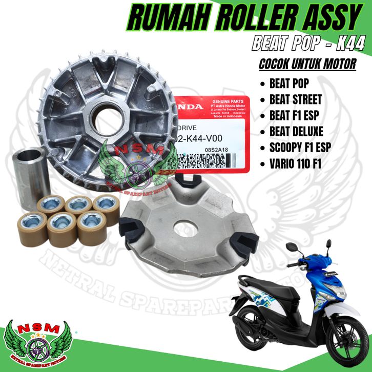 PAKET KIRI CVT BEAT POP 2ITEM RUMAH ROLLER ASSY + VANBELT BEAT POP VARIO 110 F1 BEAT STREET BEAT