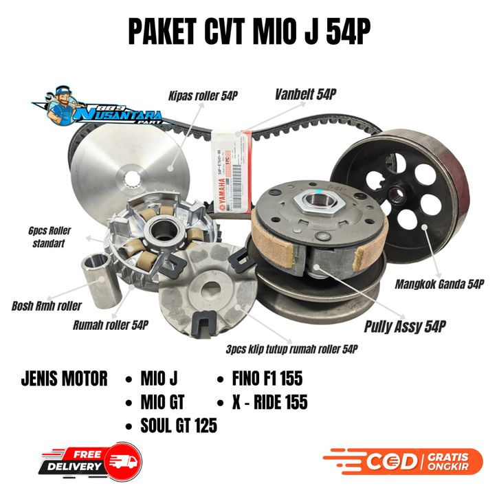 PAKET CVT LENGKAP 54P PULLY ASSY + KIPAS + RUMAH ROLLER ASSY + VANBELT MIO J / SOUL GT 115 / MIO GT