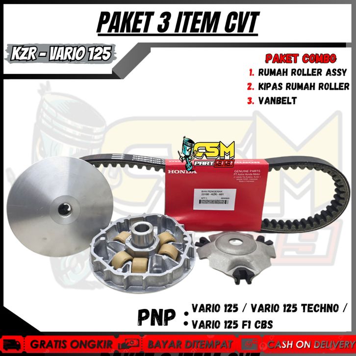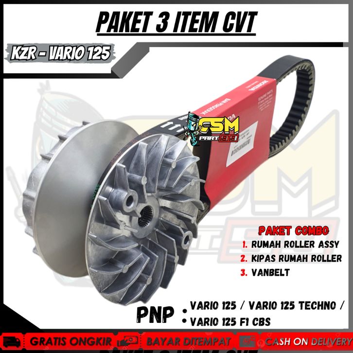 PAKET CVT 3ITEM KZR VANBELT VARIO 125 + RUMAH ROLLER ASSY + KIPAS RUMAH ROLLER VARIO 125 / VARIO 125
