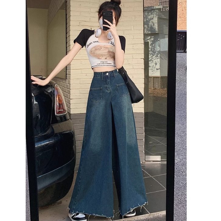 Celana Jeans Wanita Highwaist Loose Jeans Retro Panjang Basic Premium Skirt Celana Kulot Wanita Korean Style Highwaist
