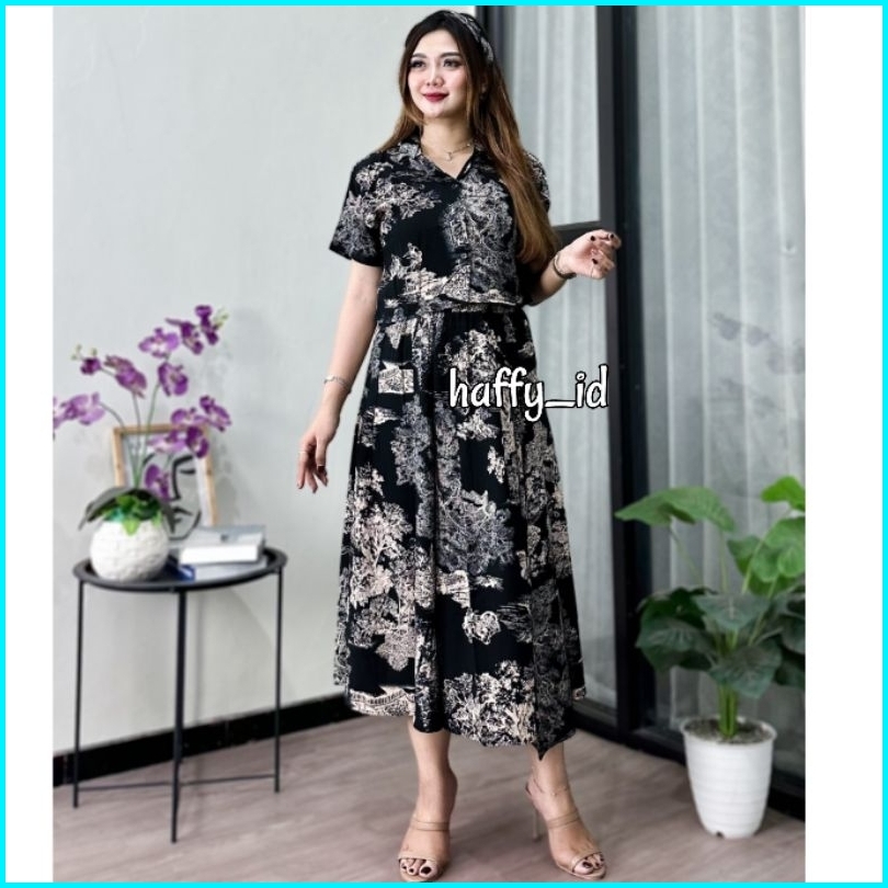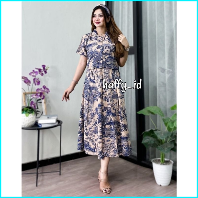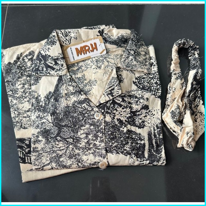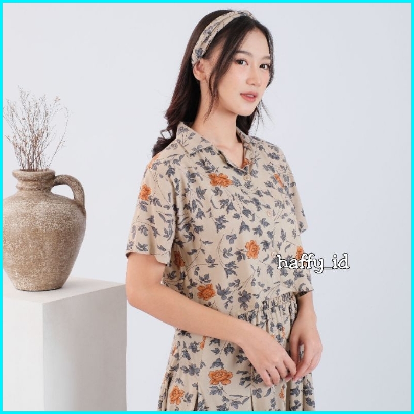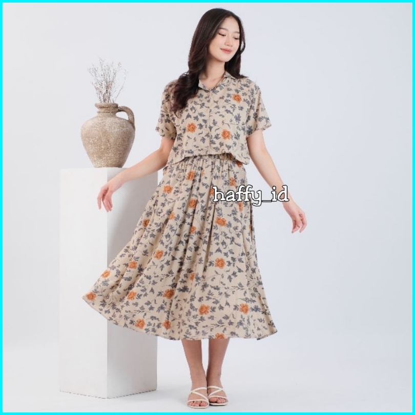 Kimmy Set Wanita Setelan Rok Dan Kemeja Crop Free Bandana Baju Atasan Rayon Premium