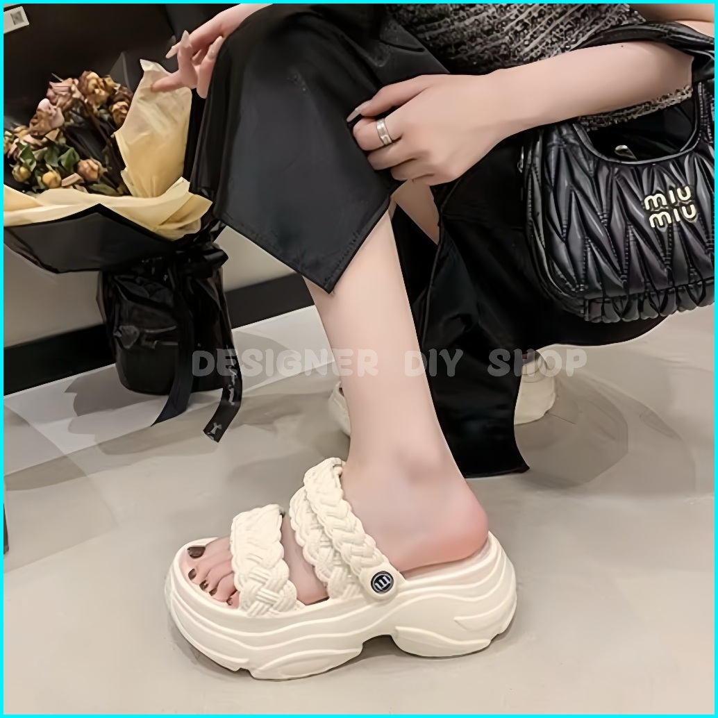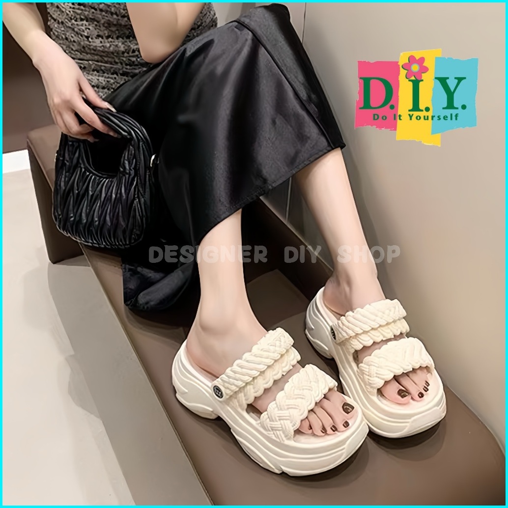 Sepatu Sandal Tali Wanita Premium Emput Selop Wedges Jelly Tebal 7cm