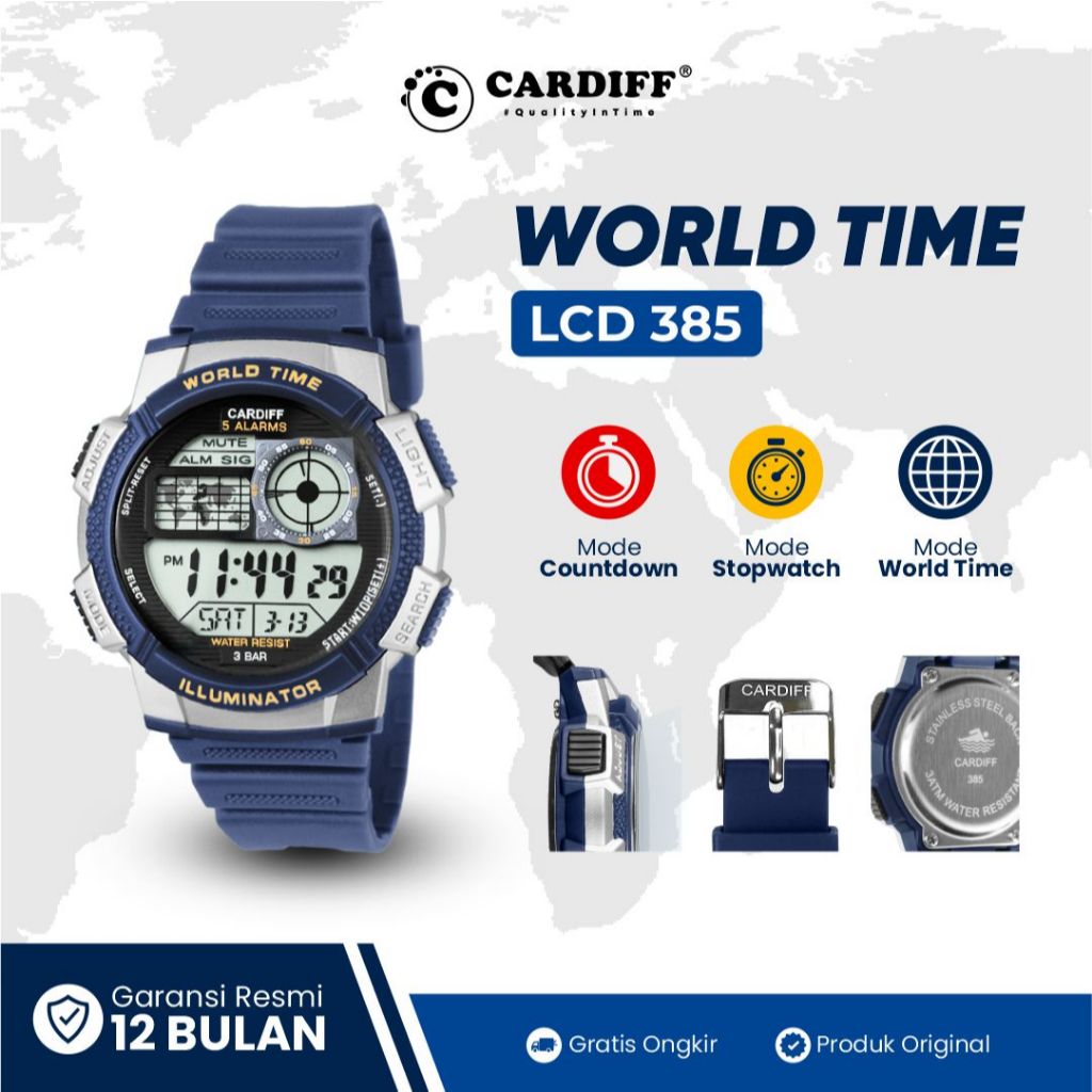 CARDIFF WT 385 Water Resisst Jam Tangan WORLD TIME