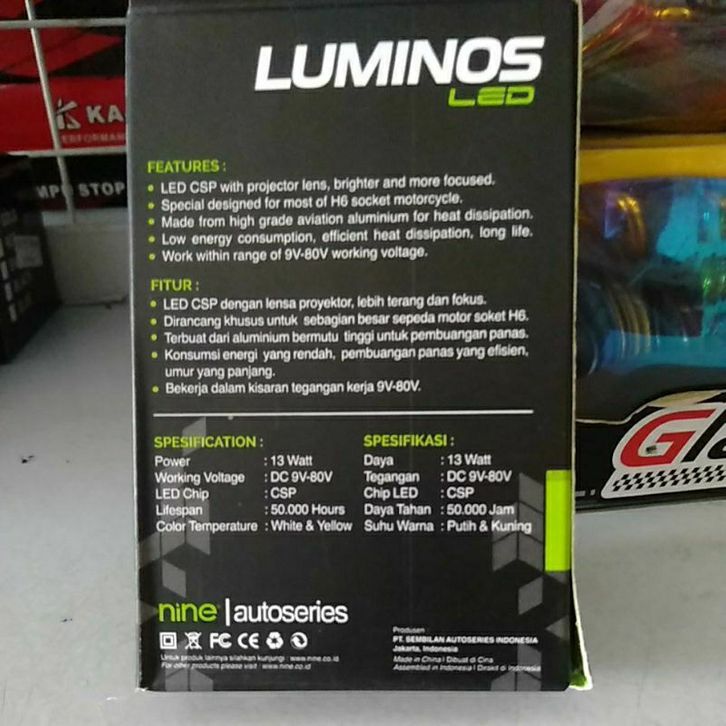 Lampu Led Motor Original H6 9Nine Luminos Ls 2 Putih Kuning Dc