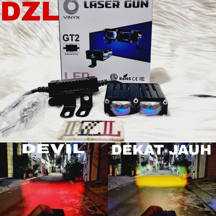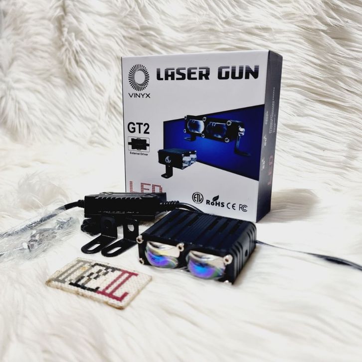 Lampu tembak sorot led vinyx laser gun gt2 devil 2 mata 30 watt purple lens 2 kipas