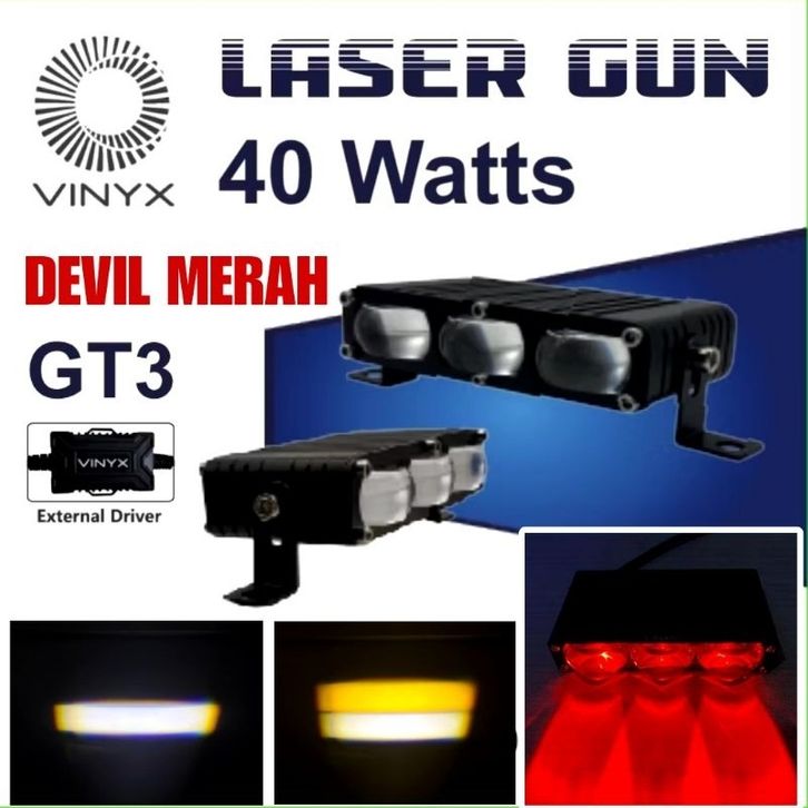 Lampu Tembak Vinyx GT3 40W Laser Gun Slim Grill Mobil Motor 2 Warna Putih Kuning