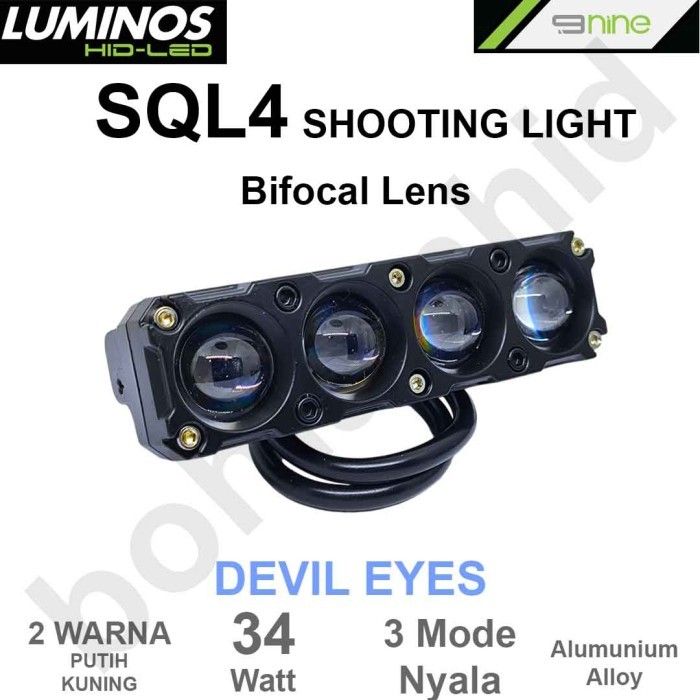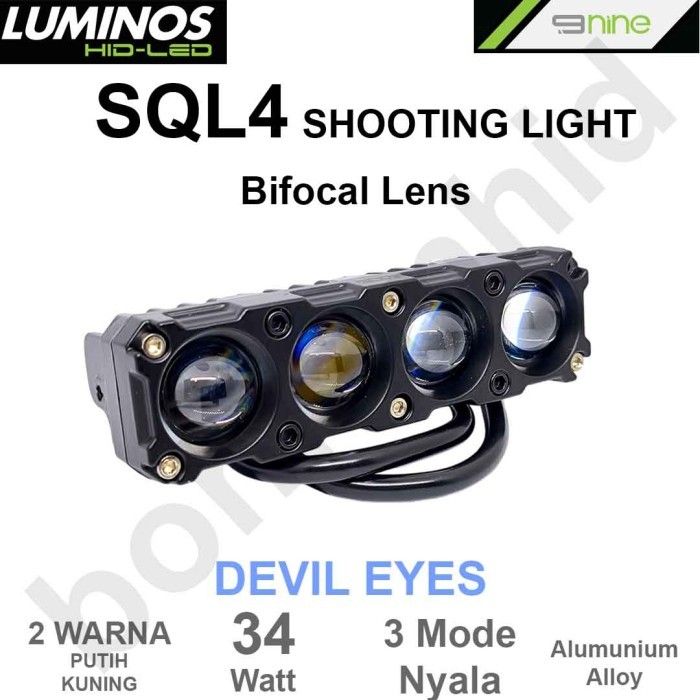 L- SQL4 Lampu Tembak LED ECO9 LUXIMOS Projektor Laser 34W 2 Warna Putih Kuning Motor Mobil