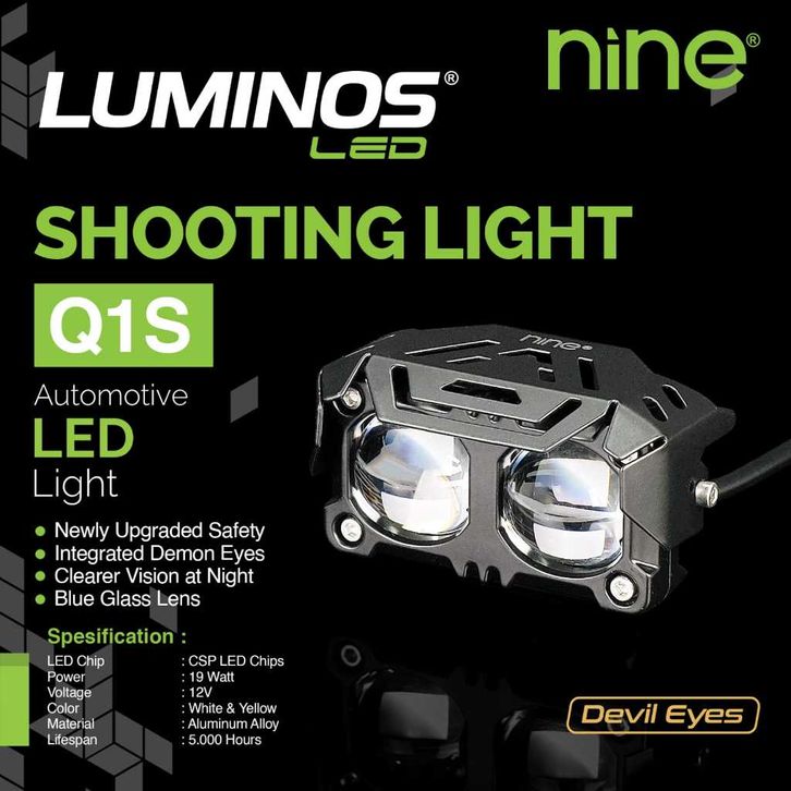 LAMPU TEMBAK SOROT LASER MOTOR MOBIL 2 MATA PUTIH KUNING ORIGINAL 9NINE LUMINOS LED Q1S DEVIL EYES