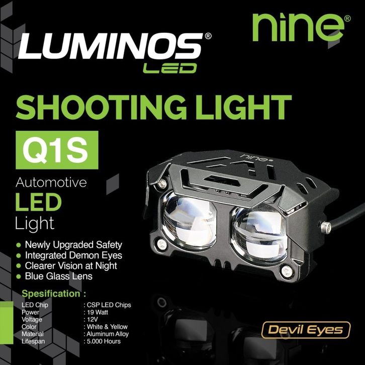 Lampu Tembak Luminos Q1S BiLED Projektor 3Mode Devil Eyes 19W 14000 Lumen Motor dan Mobil