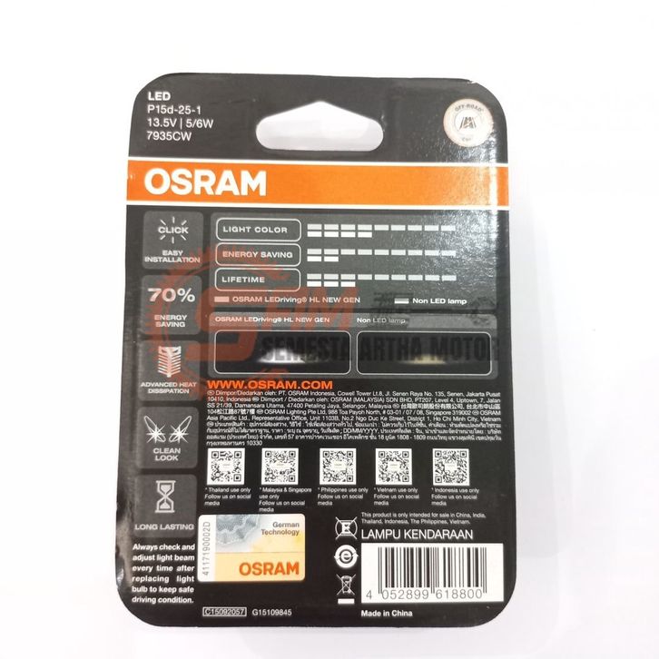 Osram LED T19 AC DC Kaki 1 H6 M5 12V Lampu Depan Motor Hi Low Tembus Kabut