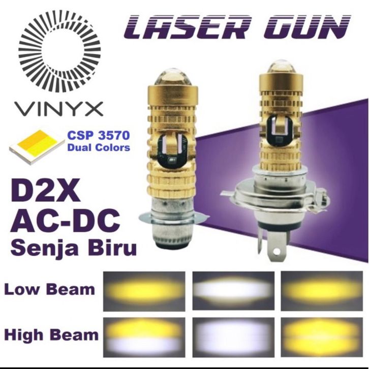 Lampu Utama LED Motor Lasergun Motor AC DC Laser Gun H4 VINYX D2X D2 CSP PUTIH KUNING