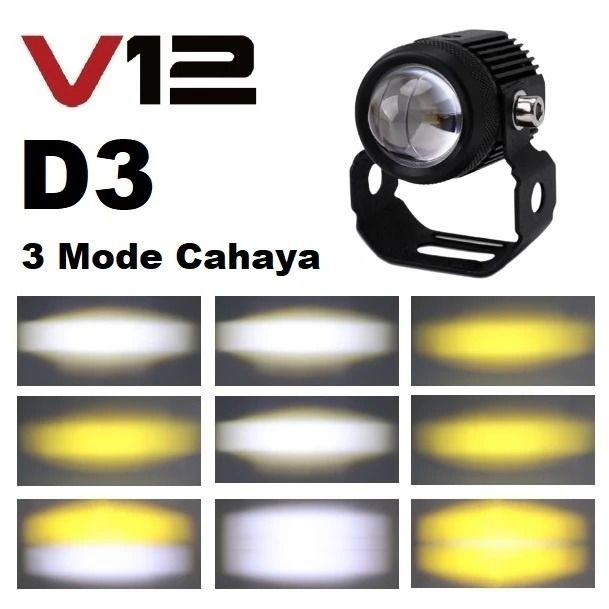 Lampu Sorot Tembak Laser Gun Mini LED V12 D3 Motor Mobil 20Watt 2 Warna Putih Kuning 20W 20 Watt