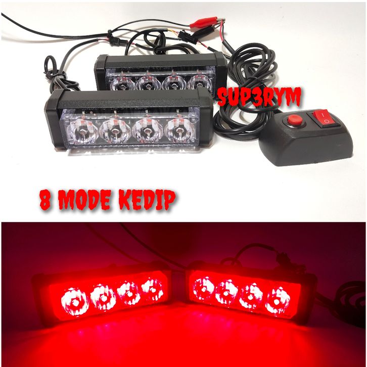 lampu motor mobil 4 mata led 8 mode kedip biru