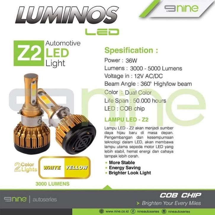 LAMPU LED UTAMA MOTOR H6 H7 H4 NINE LUMINOS BIRU PUTIH KUNING SUPER TERANG Z3 Z2