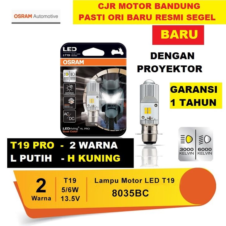 LAMPU DEPAN PROYEKTOR LED MOTOR OSRAM T19 PRO H6 Hi Low 2 WARNA PUTIH KUNING ORI GARANSI 1THN